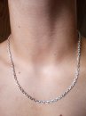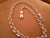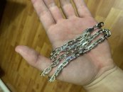 Полновесная цепочка.На фото изображена якорная серебряная цепь массой более 100 грамм и длиной около 60 см. Как показывает практика, цепочка с такими размерами привлечёт скорее мужское внимание, поэтому данную цепочку можно по достоинству назвать «мужской». Но не спешите закрывать страницу, если Вас не устраивают её размеры, ведь Вы всегда с лёгкостью сможете настроить её параметры (нажав на ссылку "Выбрать другие размеры") так, как считаете наиболее подходящими, отчего также может измениться и её стоимость.